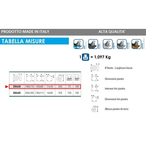 - Tipo di ruotaCiottolo/Rullo