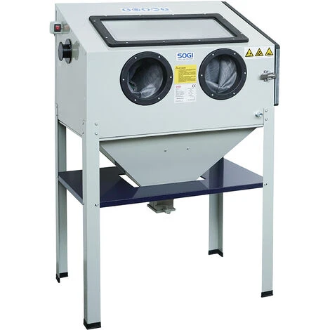 La sabbiatrice SOGI S-85 è una macchina professionale dotata di impianto di illuminazione interna, modello con singola apertura laterale. La macchina è dotata di certificazione a norma CE.