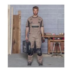 Salopette da lavoro con numerose tascheLa salopette beige Cetus offre molteplici tasche per riporre gli utensili da lavoro come; penne (2 tasche), porta metro (1 tasca). Con le 5 ampie tasche esterne e il tascone sulla pettorina, puoi tranquillamente portare con te tutti gli attrezzi di cui hai bisogno. Le cerniere e i bottoni sono in materiale plastico e coperti da una patta in tessuto. In questo modo è possibile svolgere attività su superfici delicate senza il pericolo di creare graffi o danneggiare i prodotti. Se si lavora in un aereoporto, l’assenza di metallo nella salopette ti permette di passare nel metal detector senza che suoni.Salopette beige resistente e di qualità per falegnamiIl taglio ergonomico sul ginocchio e un inserto elasticizzato sulla cintura assicurano un comfort ottimale. A norma EN 14404 se si utilizzano le nostre ginocchiere da lavoro, facilmente inseribili all’interno delle tasche porta ginocchiera. Il tessuto Klopman certificato OEKO-TEX® ti garantisce l’assenza di sostanze nocive e un prodotto di qualità lavabile anche a livello industriale ad alte temperature.La salopette Cetus è disponibile in altri 8 colori differenti. Scopri tutti gli altri prodotti della collezione Cetus..