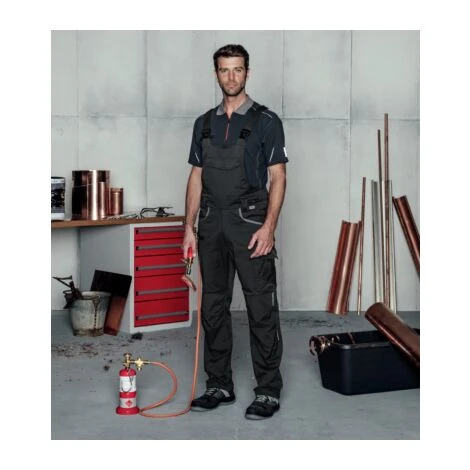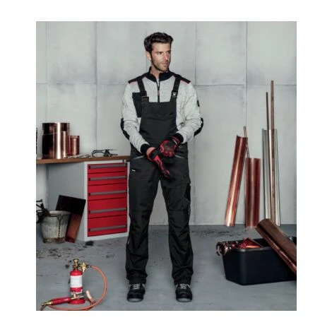 Salopette nera da lavoro StretchXSalopette nera con tessuto elasticizzato in cotone e poliestere che permette movimenti estremi e una robustezza inalterata nel tempo. Un comodo tascone sul petto con chiusura in zip consente di riporre velocemente piccoli attrezzi da lavoro. Si hanno a disposizione sulle gambe della salopette altre 8 tasche tra cui una tasca portacellulare E-care che scherma il corpo dalle onde elettromagnetiche. Le bretelle sono elasticizzate e non danno fastidio durante il lavoro di tutti i giorni. Disponibile in due versioni: con gamba corta 24-30 e gamba lunga 90-118..