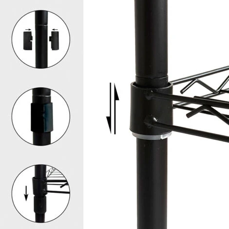 La combinazione perfetta di versatilità e resistenza! Con una struttura in metallo e una finitura cromata nera di alta qualità, la scaffalatura metallica Klaus 160 con grata è un’efficace soluzione di stoccaggio. Grazie ai suoi 5 ripiani in metallo super resistenti, potrete riporre tutto ciò che vi serve. Il peso supportato per ripiano è di 35 kg, quindi è adatto all’uso in garage, nel ripostiglio, in cucina o in bagno. È molto facile da installare e ha un’altezza notevole per poter riporre tutto ciò che serve. È adatto sia per uso professionale che domestico e comprende ganci per appendere gli utensili. Questo prodotto è conforme alle norme di sicurezza europee, il che garantisce la qualitá del prodotto.nnCaratteristiche:n- Dimensioni: 56x35x160 cm.n- Materiale della struttura: acciaio rifinito in cromo verniciato nero.n- Materiale del ripiano: acciaio rifinito in cromo verniciato nero.n- Spessore della struttura: tubo 19×0,28 mm.n- Colore: nero.n- Peso: 4,50 kg.n- Peso supportato: 175 kg in totale e 35 kg per ripiano.n- Modulare: No.n- Ruote: No.n- Arresto inferiore: sì.n- Arresti superiori: sì.n- Certificazione: CE.