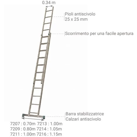 – Le due sezioni della scala non possono essere separate oltre un’altezza di 3.00 metri.