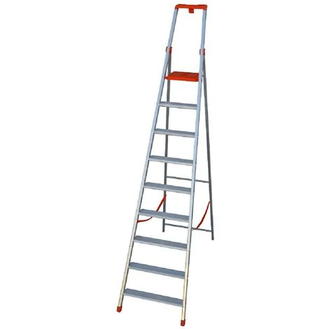 Scala professionale, altezza ultimo gradino cm 228, altezza raggiungibile cm 405. Altezza chiusa cm 312, spessore cm 14, portata 150 kg certificata.