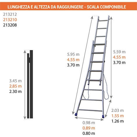 – Scala 2 tronchi utilizzabile in posizione autostabile oppure in appoggio.