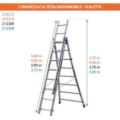 – L’altezza di lavoro massima è identica alla lunghezza della scala in posizionesemplice oppure a cavalletto aggiungendo 1 metro.