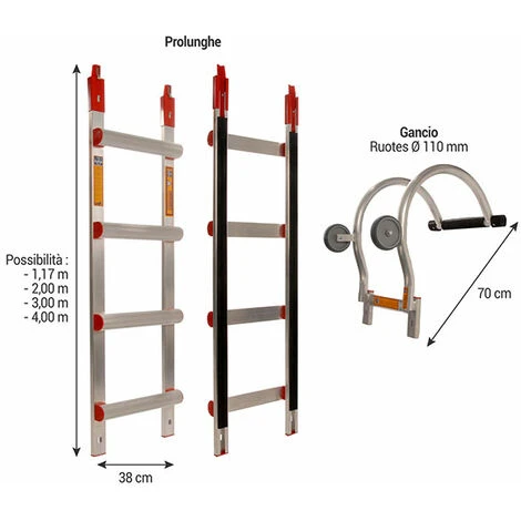 – Scala da tetto allungabile a piacere. Trasporto e stoccaggio facili.