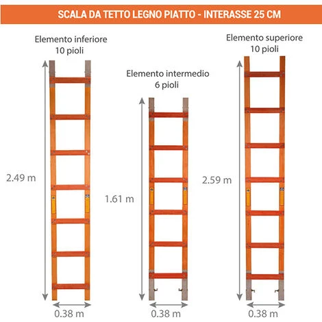 – La scala è composta da 3 elementi che possono essere assemblati facilmente e rapidamente per una lunghezza totale di 6.48m.
