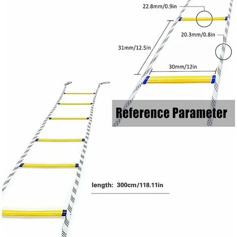 Dimensioni della scala di corda: lunghezza: 3 m, a seconda di dove si desidera appendere la scala di corda, è molto conveniente. Verificare sempre la sicurezza prima dell’uso. Interrompere l’uso se la corda è usurata o anormale