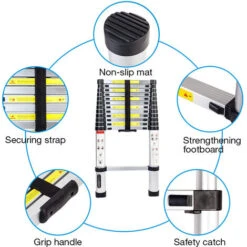 La scale telescopiche ha una funzione telescopica e il materiale della lega di alluminio ha una certa elasticità, garantire l’uso sicuro del prodotto.Usalo con fiducia