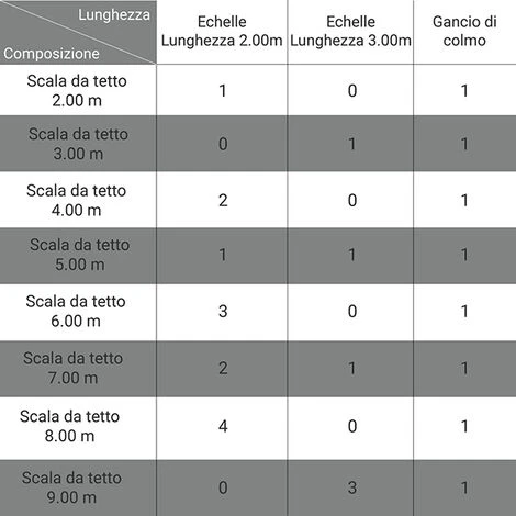– DL32 scala per tettot 8.00m: 4 scale 2.00m + 1 gancio di colmo.