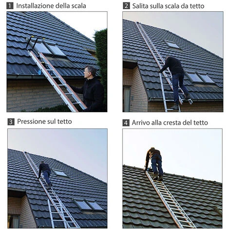 – Scala per uso professionale sui tetti: coperture a pendenza, zinco, falegnameria.