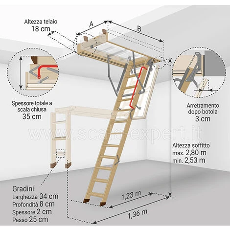 – Scala retrattile per un accesso sicuro alla soffitta.