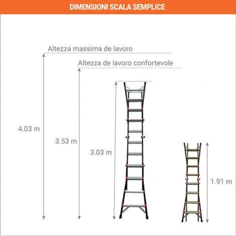 – L’altezza di lavoro confortevole corrisponde alla lunghezza della scala + 0.50 metro massimo.