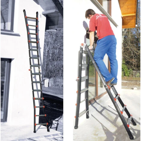 – Diverse posizioni possibili per raggiungere altezze importante in qualsiasi configurazioni, con o senza appoggio al muro, anche su fondi irregolari.