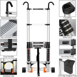 L’altezza totale di questa scala telescopica è di 2,0 m quando è completamente espansa.