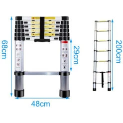 ▶▶ La scala telescopica da 2,0 m è realizzata in lega di alluminio resistente alla corrosione, con una capacità di carico di 150 kg.