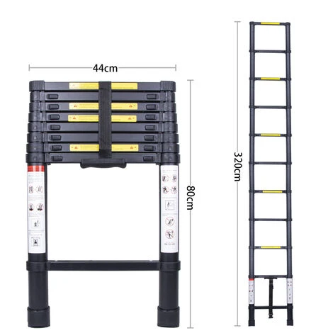★★ Questa scala telescopica da 3,2 m è realizzata in lega di alluminio resistente alla corrosione e può sopportare 150 kg.