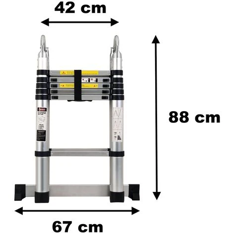 – Altezza estesa: 3,80 metri (scala) / 1,90 metri (scala a pioli)