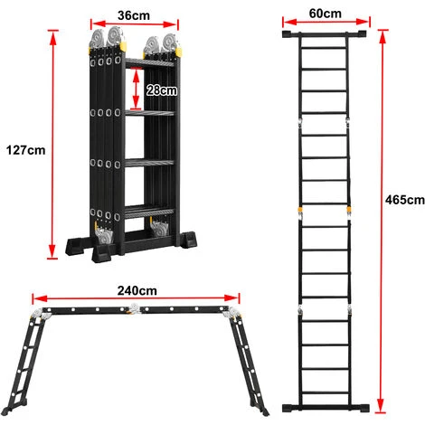 Può essere utilizzata come scala singola, scala a doppia faccia, cavalletto, piattaforma di lavoro, scala a pioli, ecc.