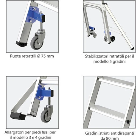 – Ruote retrattili fino a 75 mm.