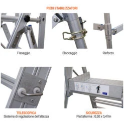 – Possibilità di usare la scala su fondi irregolari o scale grazie ai piedi regolabili: affidabilità e sicurezza.