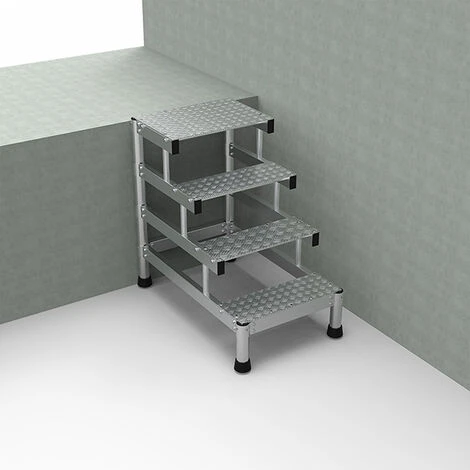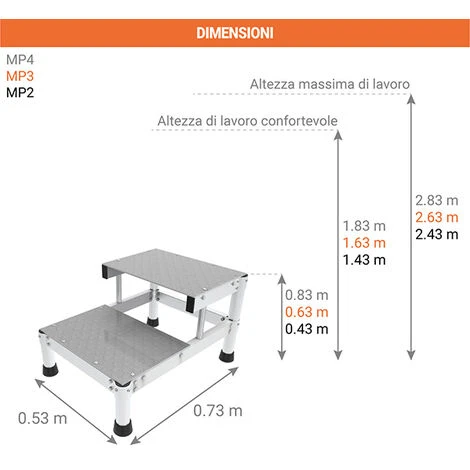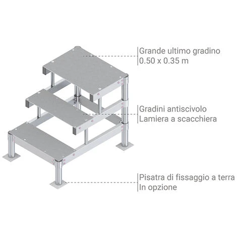 – Comodissima pedana grazie alla sua grande larghezza – calzari coprenti ben dimensionati – gradini alluminio antisdrucciolo.