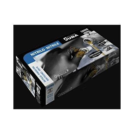 Scatola di 50 guanti monouso neri in nitrile senza polvere taglia 9 juba. guanto grippaz monouso ambidestro in nitrile senza polvere. colore blu, spessore 0,15 mm. usi: assemblaggio, verniciatura a spruzzo, industria chimica (rischi minimi), manutenzione di veicoli, servizi di pulizia, agricoltura / orticoltura, officine, uso generale.