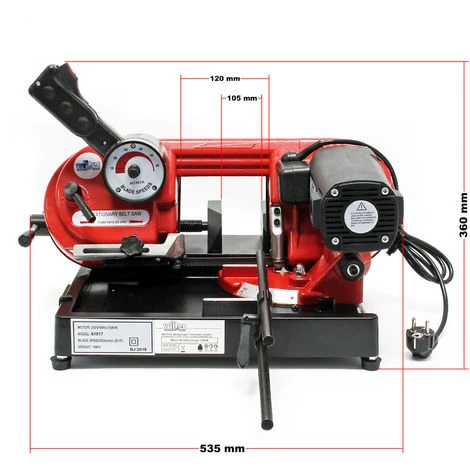 | Dimensioni | Dimensioni del dispositivo: 620 x 530 x 580 mm Dimensioni della lama: 1140 x 13 x 0,65 mm Lama da sega: 14 TPI |