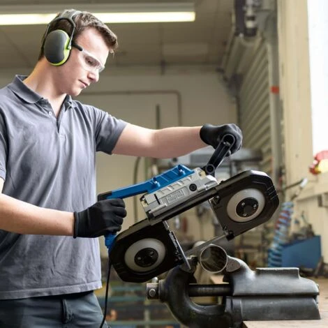 La sega a nastro per metallo MBS1200 di Scheppach può essere utilizzata in vari modi. Può essere utilizzato sia a mano che montato saldamente su un telaio.
