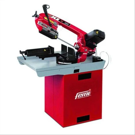 Con basamento. In alluminio, taglio con lubrificazione, morsa in ghisa a bloccaggio rapido e scorrimento veloce. Capacità di taglio maggiorate Ø 175 mm / 200×75 mm. Angolo di taglio regolabile da 0° a 60° sinistra. Taglio a 0° 200×75 mm (tondo 175 mm-quadro 175×175 mm), a 45° 150×110 mm (tondo 110 mm-quadro 110×110 mm), a 60° 100×70 mm (tondo 75 mm-quadro 75×75 mm). Regolatore elettronico di velocità con limitatore amperometrico. Guidalama scorrevole, vano per contenimento liquido lubrirefrigerante. Dimensioni mm.780x1240x1080. Peso 140 kg. Motore monofase 230V. Lama bimetallica al cobalto.
