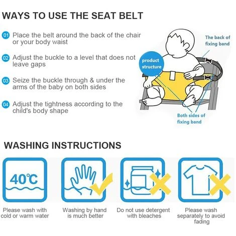 Facile da pulire: lavabile in lavatrice per una pulizia semplice. Materiale: tessuto di alta qualità, cotone morbido, sicuro e amp; comodo, non c’è bisogno di preoccuparsi che il tessuto della cintura da pranzo per bambini danneggerebbe la pelle del tuo bambino. Seguendo semplicemente i metodi di pulizia, la cinghia del seggiolino per l’alimentazione è facile da pulire.