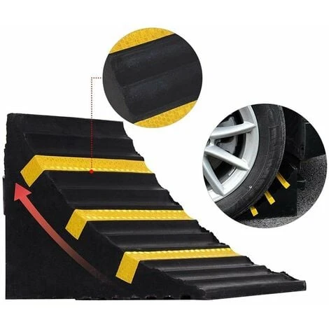 1 x Set 2 Cunei Bloccaruote Fermaruote Gomma Dura Ferma Ruota Ruote Catarifrangenti