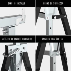Set di 2 cavalletti telescopici pieghevoli Boudech ideali come trabattello, pontile, banco da lavoro e supporto taglia travi.