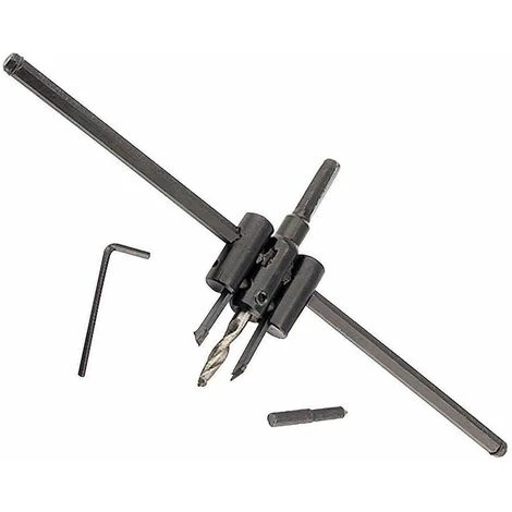 La fresa a compasso é utile per fare fori ad alta precisione su cartongesso, legno sottile, cartone compresso e materiali plastici. Permette di praticare fori regolando il diametro con la massima semplicitá. Si applica a qualsiasi trapano ed é dotato di perno a sezione esagonale per evitare lo slittamento. Tra l’altro il set comprende una punta di precisione e un chiavino esagonale per poter effettuare le dovute regolazioni.
