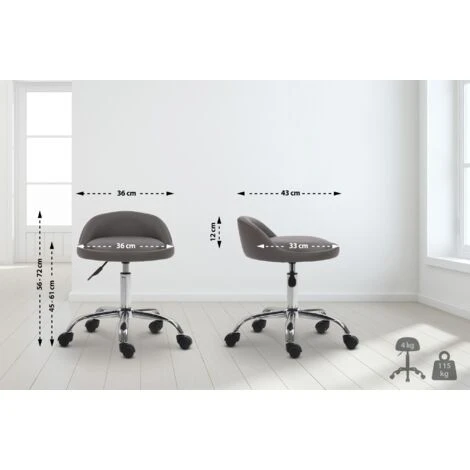 Lo sgabello da lavoro Teramo vi stupirà per la sua comodità grazie al morbido cuscino, realizzato in similpelle, e allo schienale basso, ottimale per sorreggere la schiena senza impedire la libertà di movimento. Ideale per studi medici o saloni di bellezza. La sedia da lavoro vanta un telaio resistente in metallo cromato, e delle solide rotelle con cui potersi muovere in agilità su qualunque pavimentazione senza rischio, anche sulle superifici più delicate. La seduta da ufficio è girevole a 360° ed è regolabile in altezza grazie ad una leva di facile utilizzo posta sotto al sellino.