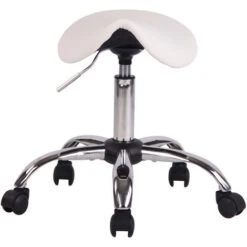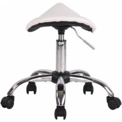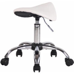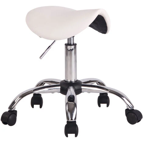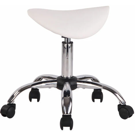 Scopri lo sgabello da lavoro con seduta a sella e struttura in robusto metallo cromato. La seduta si presenta con leggera imbottitura e un rivestimento in similpelle 100% poliuretano: facile da smacchiare e resistente. La base a croce si dota di 5 ruote antiattrito, che scorrono senza problemi su più tipi di pavimento. L’altezza regolabile tramite leva e la seduta girevole a 360° permettono di utilizzare lo sgabello senza braccioli soprattutto per scopi professionali.