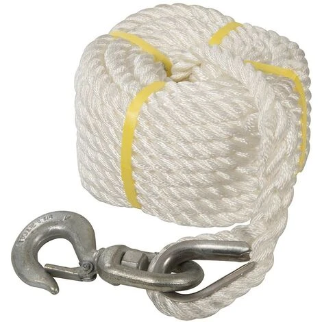 - Fune a 3 corde di 20 mm con una resistenza alla rottura di 2,5 tonnellate (2500 kg)