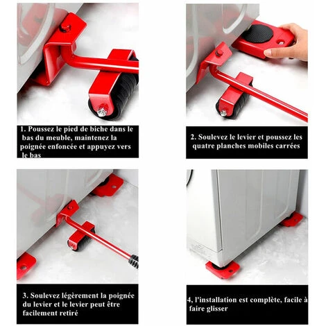 Ruota per attrezzi per il trasporto di ascensori per mobili per impieghi gravosi Kit per lo spostamento di mobili per la casa 4 utensili manuali con ruote