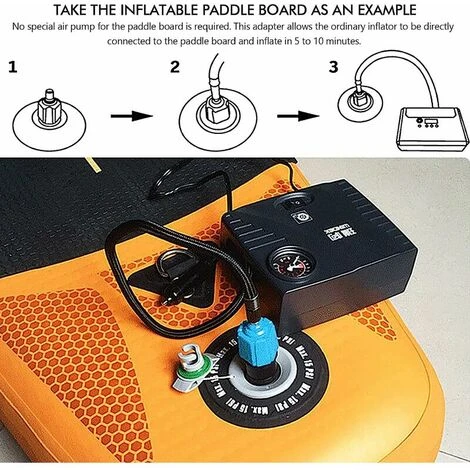 【Facile da usare e conveniente】: con questo adattatore, puoi collegare un normale tubo di gonfiaggio direttamente alla tua tavola da paddle e terminare il gonfiaggio in 5- 10 minuti.