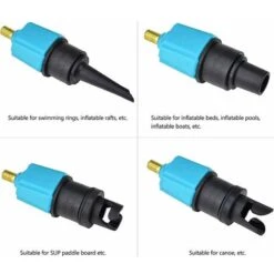 Adattatore per pompa da kayak con 4 ugelli a valvola per l’aria Trascorri un’estate perfetta! Caratteristiche : Realizzato in nylon, gomma e lega. Costruzione robusta, risparmio di manodopera, impermeabile e a prova di perdite. Si adatta alla maggior parte delle tavole da paddle, canoe, gommoni, salvagenti, letti gonfiabili, gommoni, kayak, ecc. Specifiche: Colore: blu e nero. Materiale: nylon, gomma e leghe.