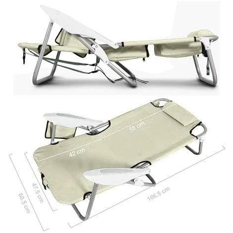 1 x Spiaggina Pieghevole Sedia Spiaggia Alluminio con Borsa Termica e Spallacci Beige