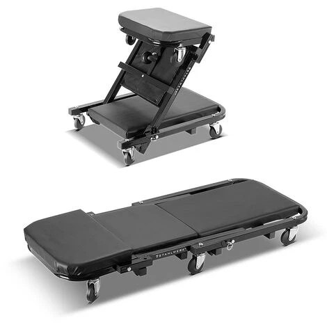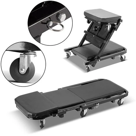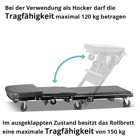 Sgabello da officina STAHLWERK 2 in 1 FRC-40 ST con capacità di carico di 150 kg, tavola pieghevole per auto | tavola pieghevole per montaggio | divano da officina | divano da montaggio con sedile e funzione reclinabile.