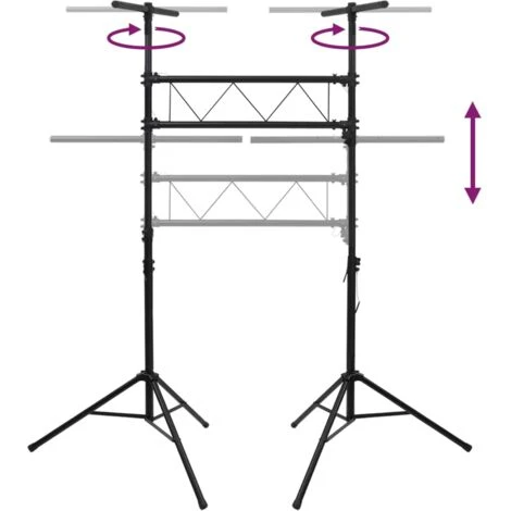 - Traliccio luminoso multifunzionale: Il supporto per luci è una soluzione completa per il posizionamento di luci e la tecnologia di effetti. Può essere combinato con vari strumenti di illuminazione, come i faretti a LED, per creare un’atmosfera da palcoscenico di grande effetto.
