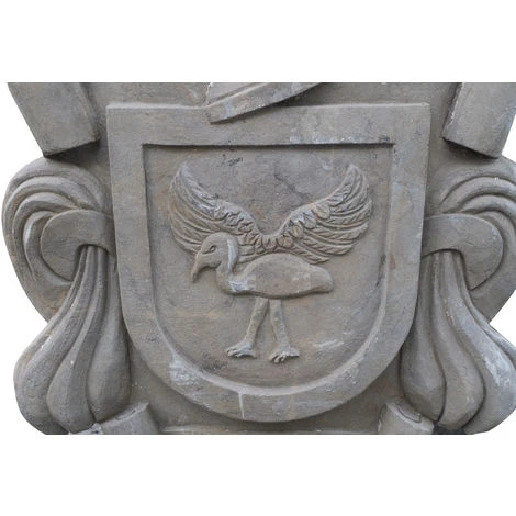 Stemma in pietra L50xPR10xH62 cm realizzato completamente a mano in un unico blocco di pietra. Le caratteristiche sfumature e venature del materiale lo rendono un pezzo unico