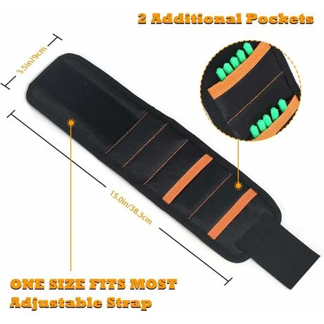 “15 MAGNETI FORTI + 2 TASCHE: il nostro braccialetto magnetico è incorporato con 15 magneti super potenti e ha aggiunto 2 tasche, quindi anche alcuni strumenti non metallici sono facili da tenere e possono contenere molto piĂš di altri braccialetti magnetici tradizionali che hanno solo 10 magneti. ^