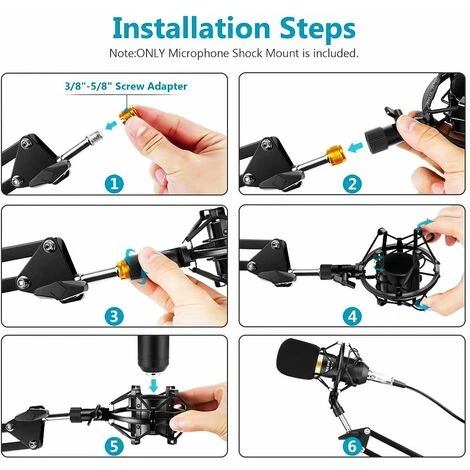 Ampia gamma di possibilità: l’ammortizzatore è compatibile solo con microfoni con un diametro del microfono compreso tra 50 mm e 50 mm. 60 mm. Si prega di controllare le dimensioni del microfono prima di ordinare