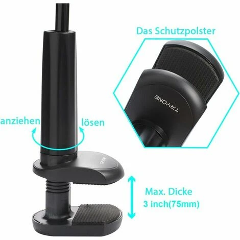 Lo spessore di una tavola consente un massimo di 7,5 cm. Grazie alla compressione della clip del piede, la base non si rompe facilmente. Il cuscino in gomma incollata protegge i tuoi mobili dai graffi