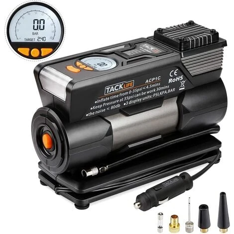 ★ Funzione preimpostata e ripristina – la compressore d’aria è possibile impostare il livello di pressione desiderata. Si spegnerà automaticamente al valore desiderato;può gonfiare 0,5-1,5 PSI aggiuntivo per compensare la perdita d’aria quando l’ugello viene rimosso.
