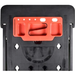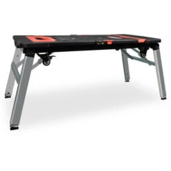 E’ un eccellente banco da lavoro, dotato di un solido piano d’appoggio completo di riga, goniometro, vano portaoggetti rimovibile e fori per l’aggancio di morsetti che facilitano il taglio tramite sega o sega circolare e l’utilizzo del trapano. È un efficientissimo cavalletto telescopico dotato di 4 gambe in acciaio richiudibili a scomparsa e regolabili in 2 posizioni, corredate da piedini antiscivolo che ne aumentano la stabilità. Ancora, grazie alle gambe telescopiche e alla presenza di un manico sollevabile al quale può all’occorrenza essere applicato il vano porta oggetti il tavolo sarà utilizzabile anche nella funzione di trabattello per assisterti sia nei lavori di pittura che in tutti gli altri lavori da effettuarsi in alto. Infine, grazie alle 4 ruote in ABS posizionate sulle base, con la scomparsa delle 4 gambe, il tavolo da lavoro si trasforma facilmente in un carrello sottomacchina utilizzabile per effettuare operazioni di manutenzione e controllo di veicoli oppure in un carrello porta oggetti utilizzabile per trasportare pacchi, mobili o elettrodomestici pesanti.