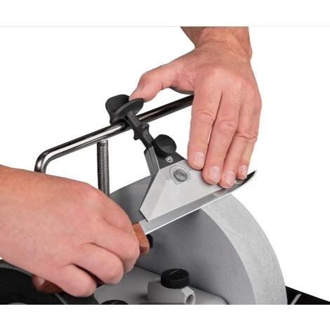 Il morsetto lungo stabilizza le lame flessibili per evitarne la flessione, assicurando angolo e pressione costanti durante tutta l’operazione di affilatura.
